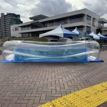 送風式タイプは、常時風を送り形を保つ構造で、防災用テントやエアーマットとして災害現場で活躍。軽量・短時間設営・高耐久で、緊急時の医療支援や熱中症対策にも対応可能。今後さらに防災用途での可能性が広がる注目のエアー式製品です。