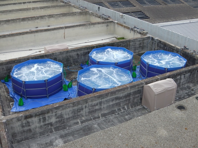 今回設置する場所は、大阪府水産技術センター様の屋上にある既存のコンクリート水槽の中でした。