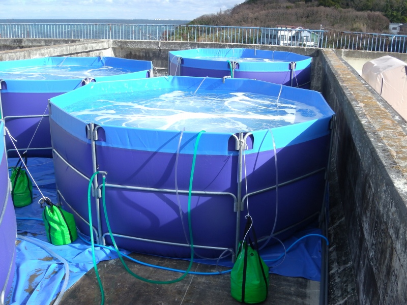 この度、海藻の育成試験を行う企業様に、陸上養殖用パイプ式水槽を4台導入いただきました。