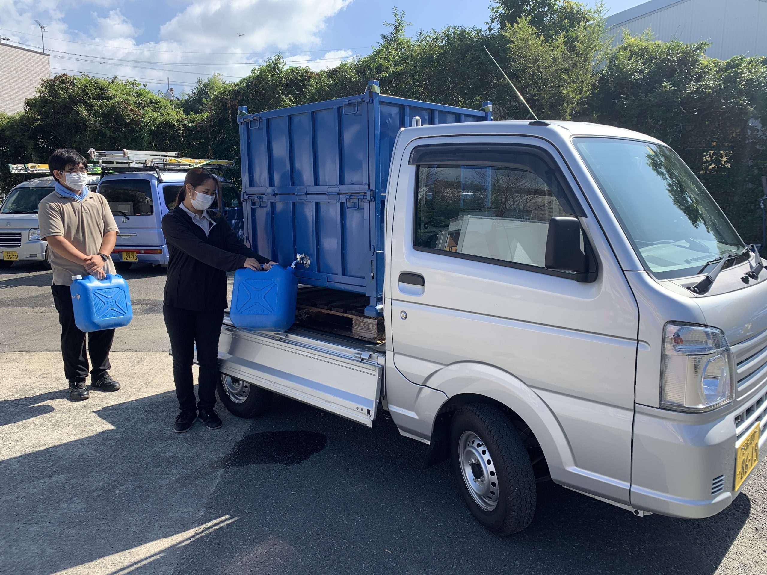 軽トラックを給水車として使えるようにする折りたたみ式貯水タンクなどもありますので参考にしてください。