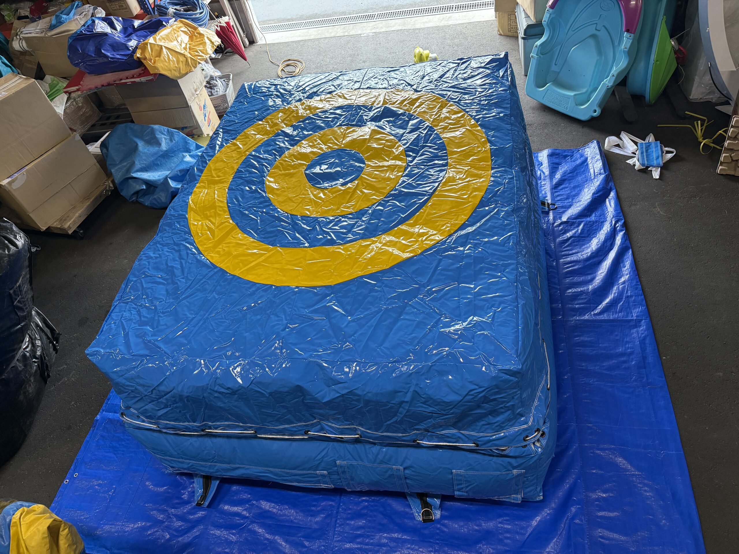 鮮やかなブルーにイエローのターゲットマークが映える、オリジナルマットが完成しました。