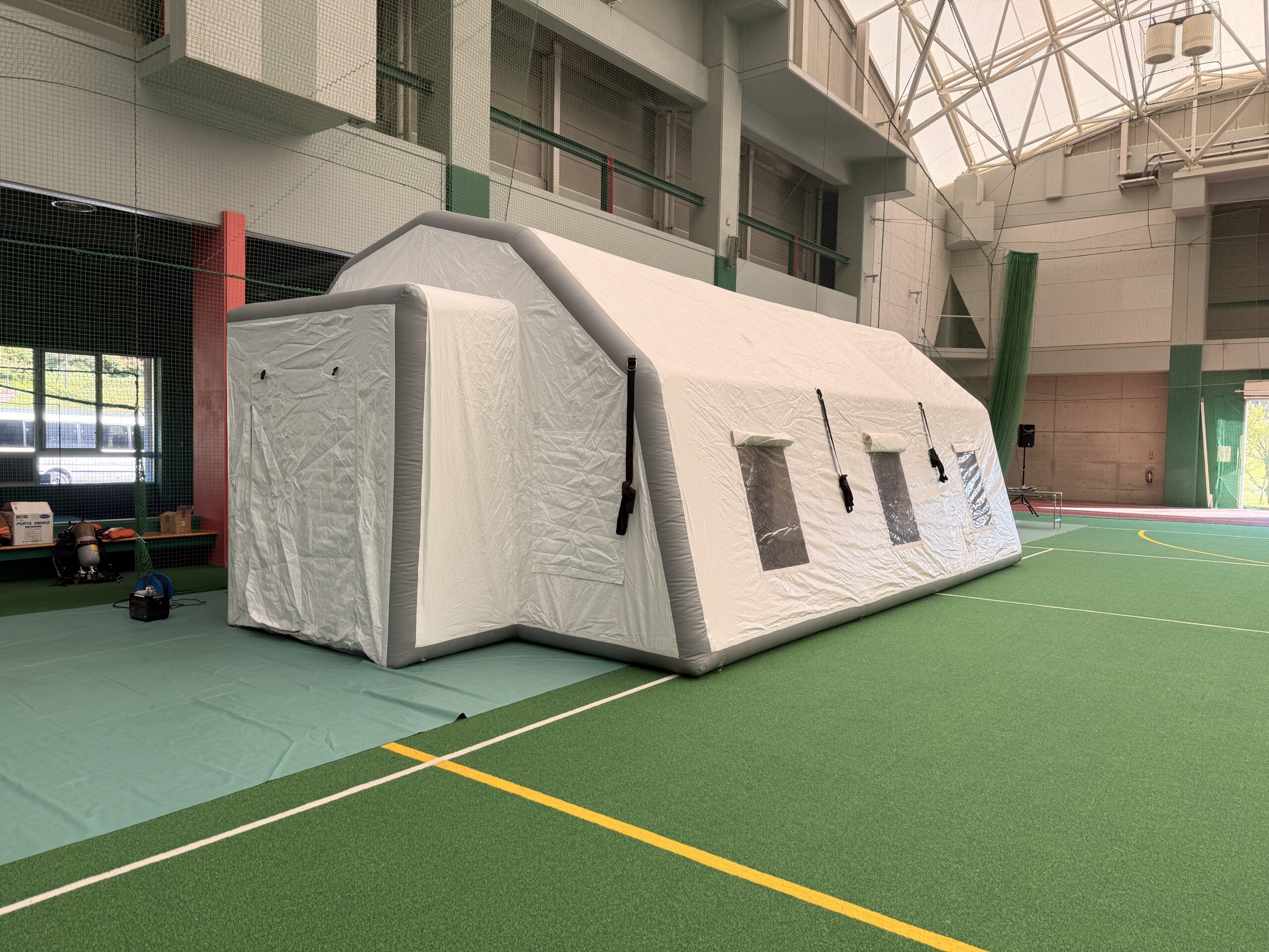 災害対策や訓練の現場では、迅速に設営できるエアー式の機材が重要な役割を果たします。