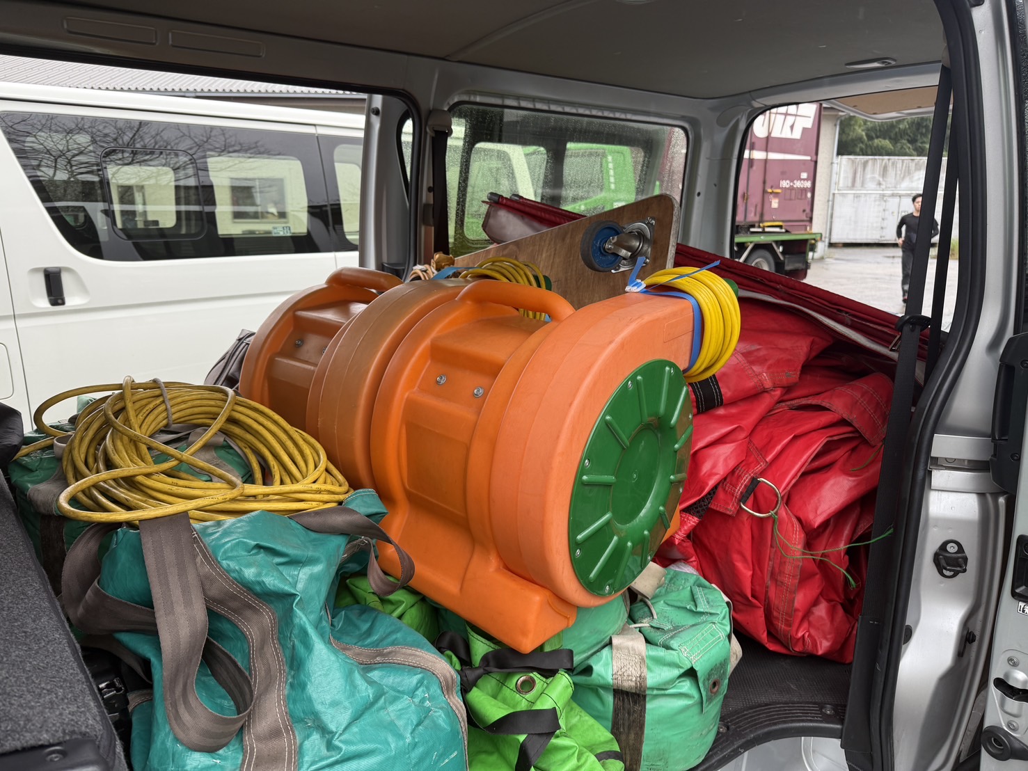 今回のイベントでは、キャラバン車に積み込み、現地まで搬入を行いました。