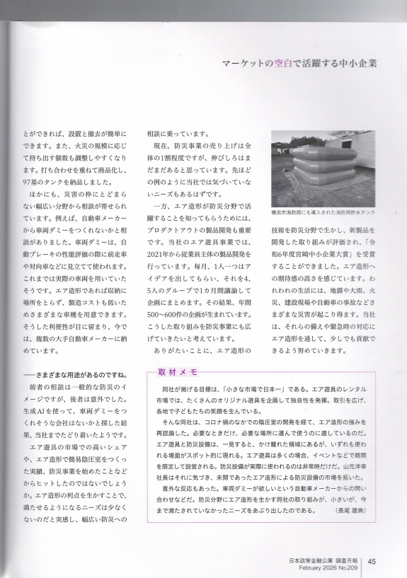この度、日本政策金融公庫が発行する機関誌『調査月報(2026年2月号)』の特集記事、