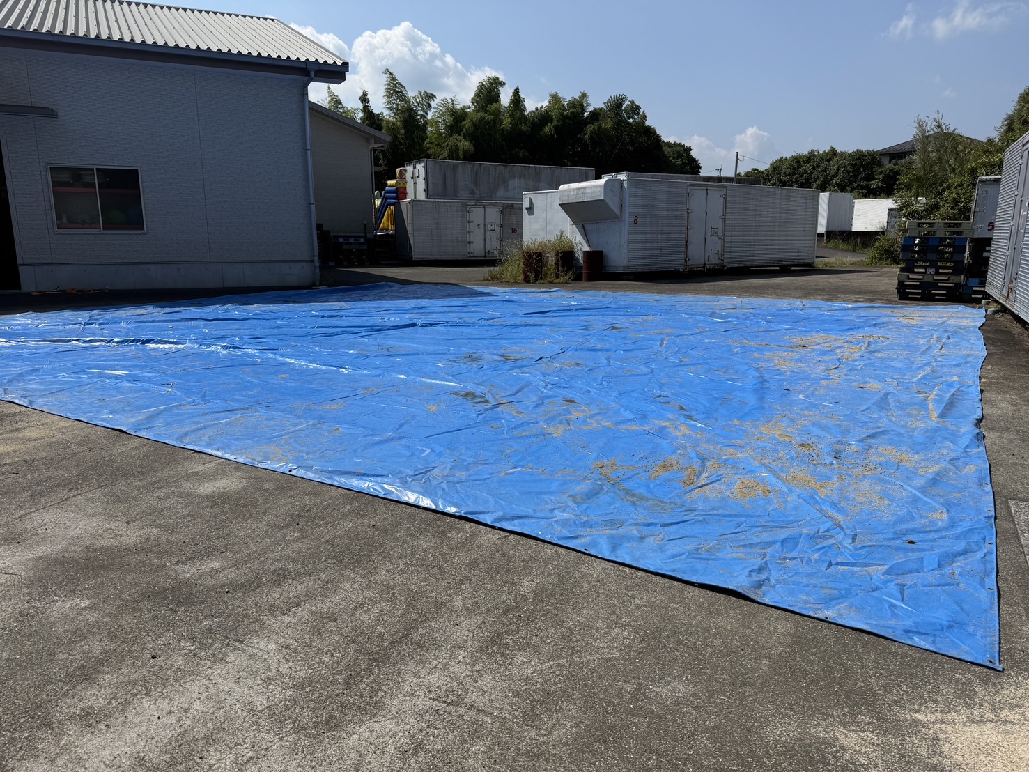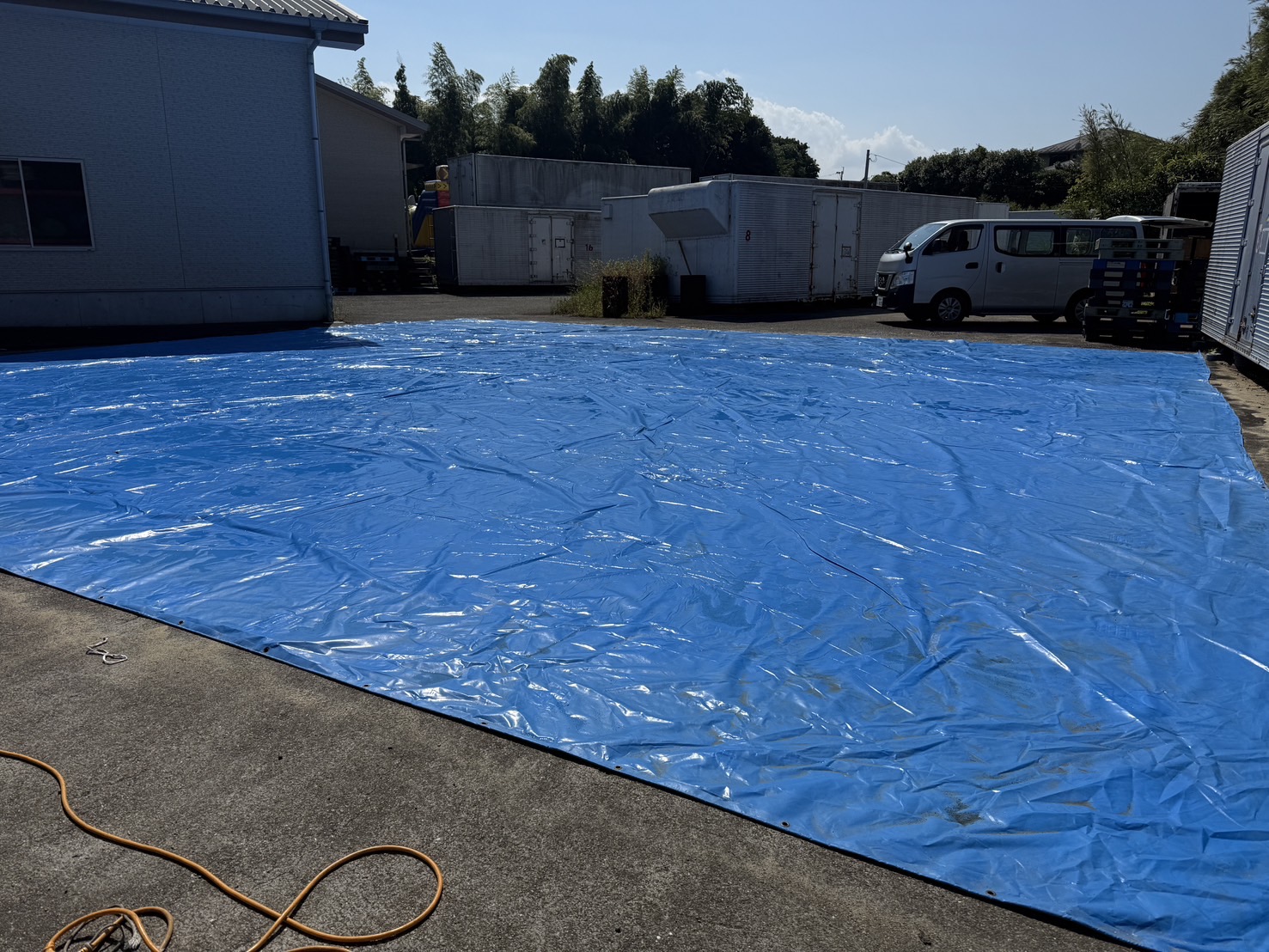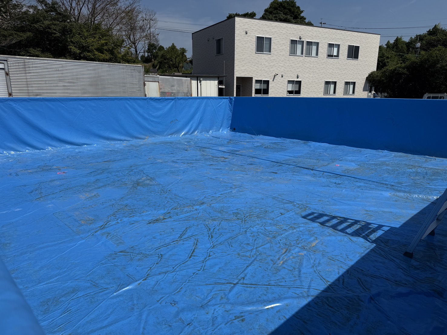 作業に入る前に、グランドシート(貯水槽の下に敷くシート)と貯水槽本体のシートをそれぞれ広げます。