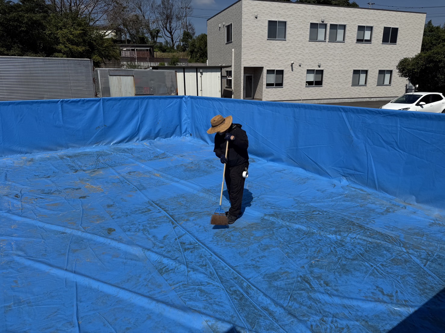 一方、貯水槽(プールシート)は一度の洗浄では落ちにくい汚れが残る場合があるため、複数日に分けて同じ工程を繰り返すこともあります。
