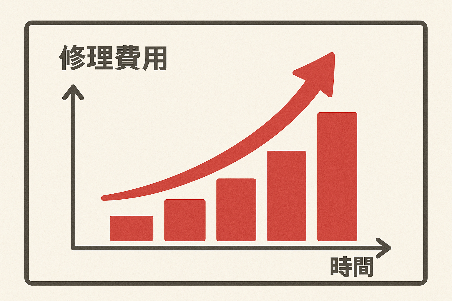 「まだ使えるから」と補修を繰り返している管理者の方も多いですが、その場しのぎの修理を続けることで、かえってコストが膨らむケースも少なくありません。