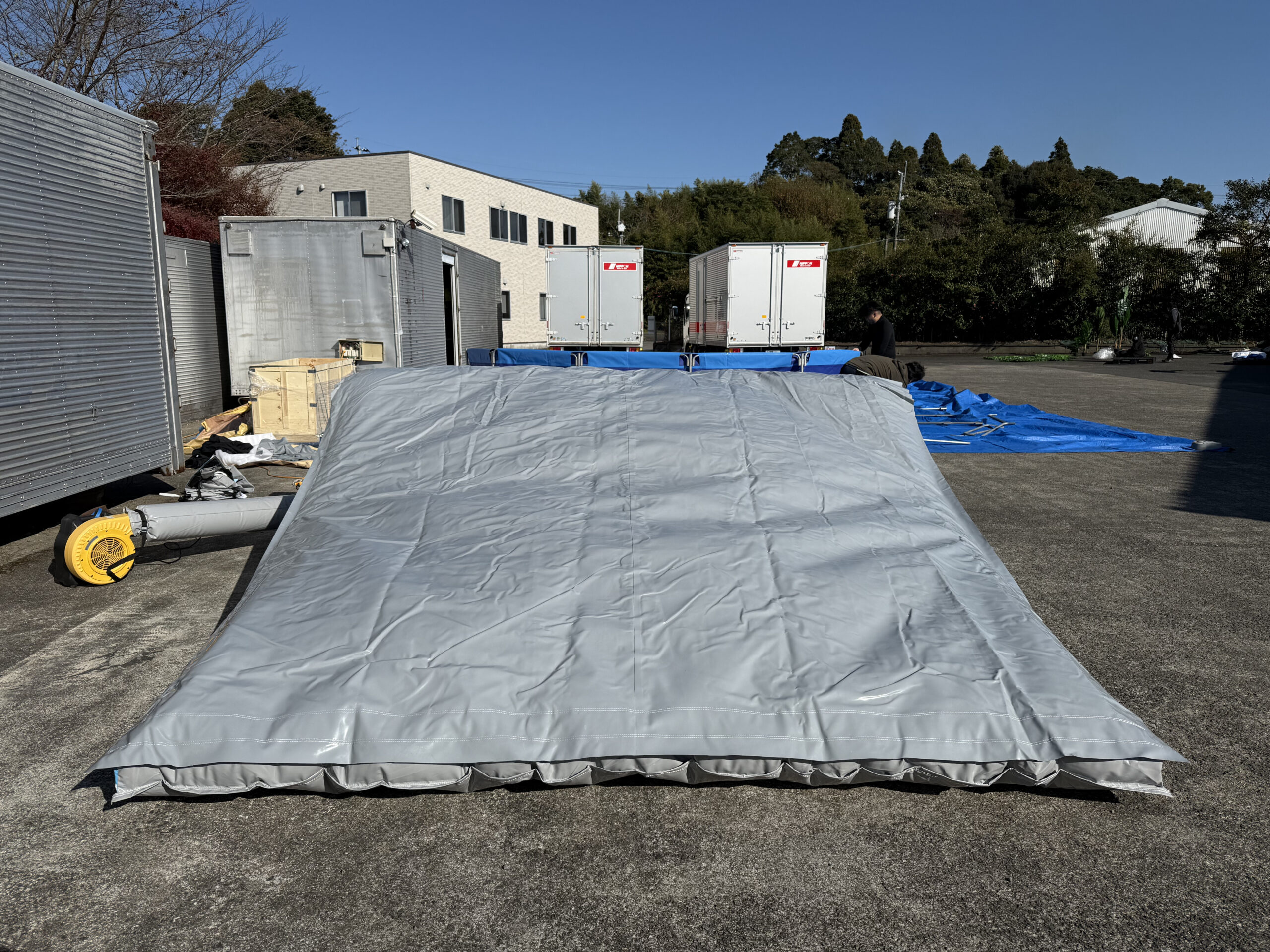 ・特徴:男性1〜2名で運搬でき、送風機で空気を送り込むだけで約10分で設営完了。手軽に導入可能です。