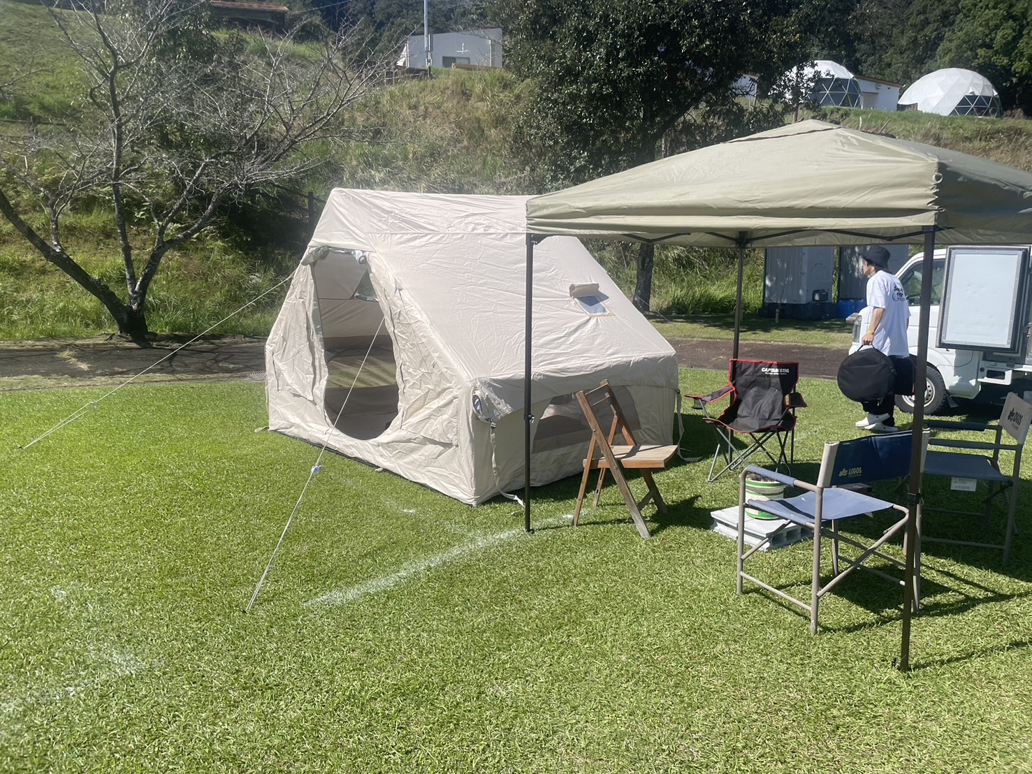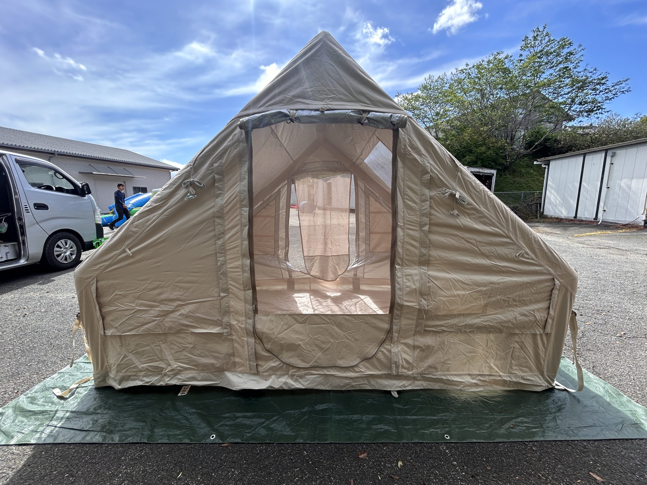 そんな「平時にも、災害時にも使える」新しいテントが、電源不要・5分で設営できるエアー式のポータブルテントです。