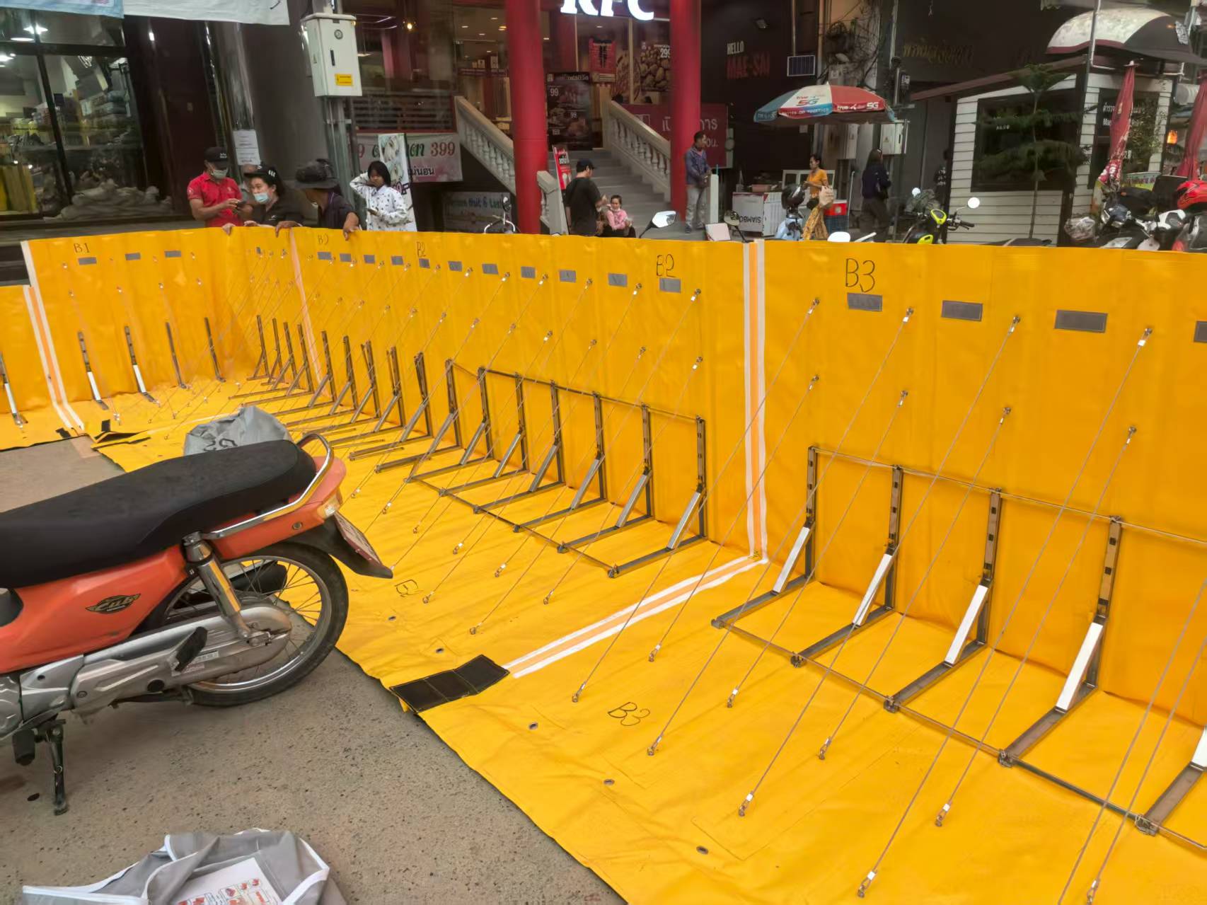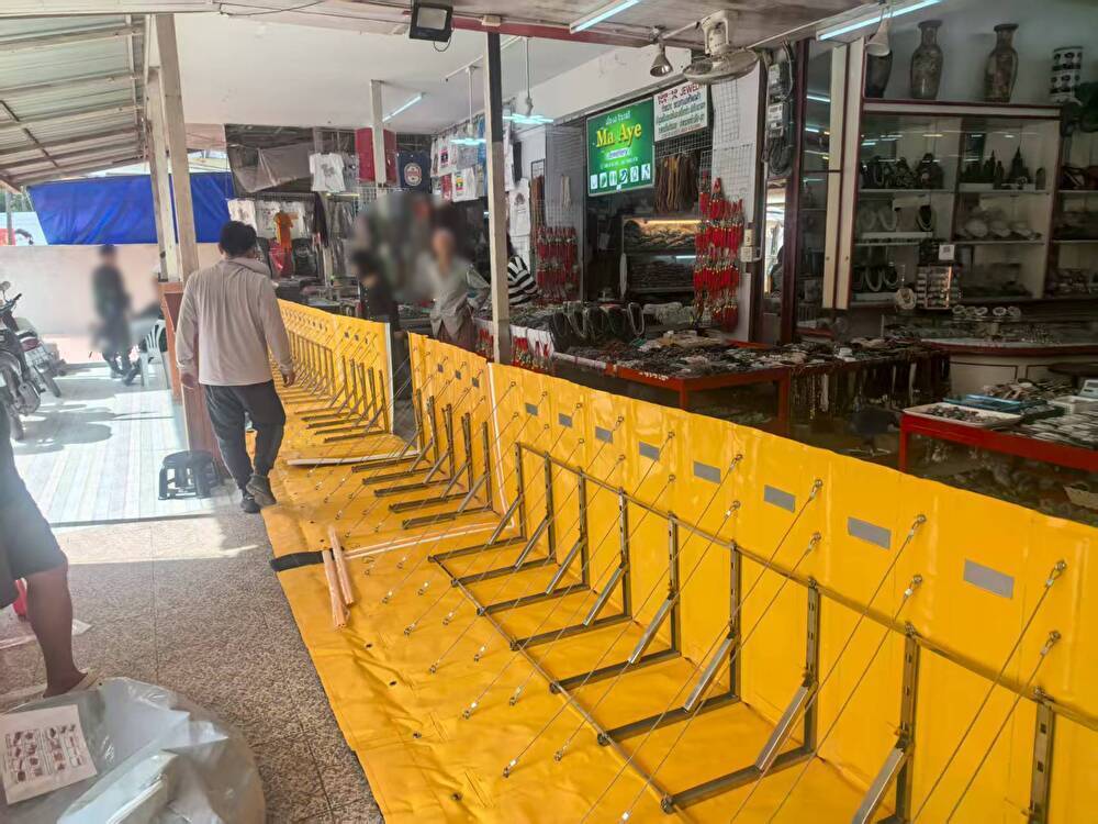 人通りの多いアーケード街や市場でも、安全かつスピーディに設置可能です。