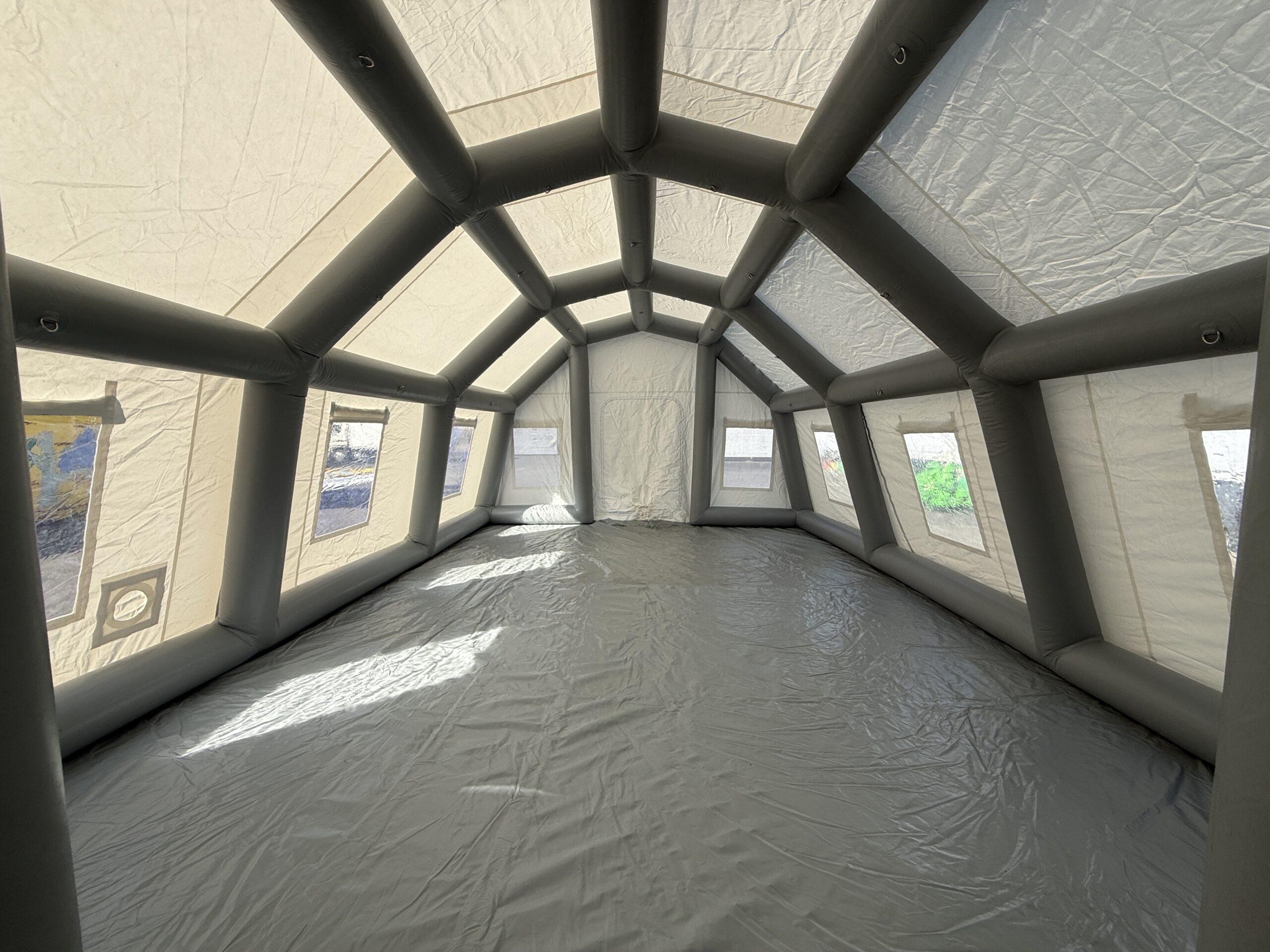 金属の柱がない「エアー式」なので安全です。このテントは空気の柱で自立する構造のため、金属製のポールを一切使用していません。万が一、煙の中で視界が遮られ、お子様が柱や壁にぶつかってしまっても、柔らかいエアー素材のため怪我をするリスクが低く、安全に訓練を行えます。