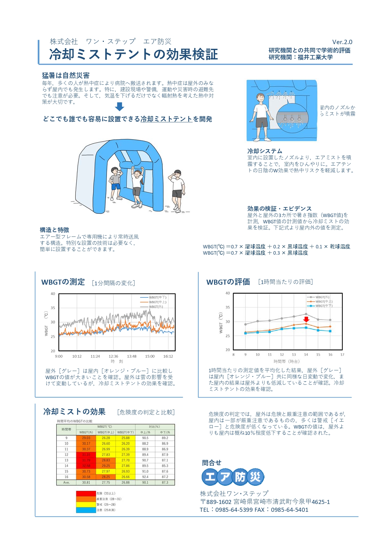 暑さ指数(WBGT値)の計測実験において、確かな冷却効果が科学的に証明されています。