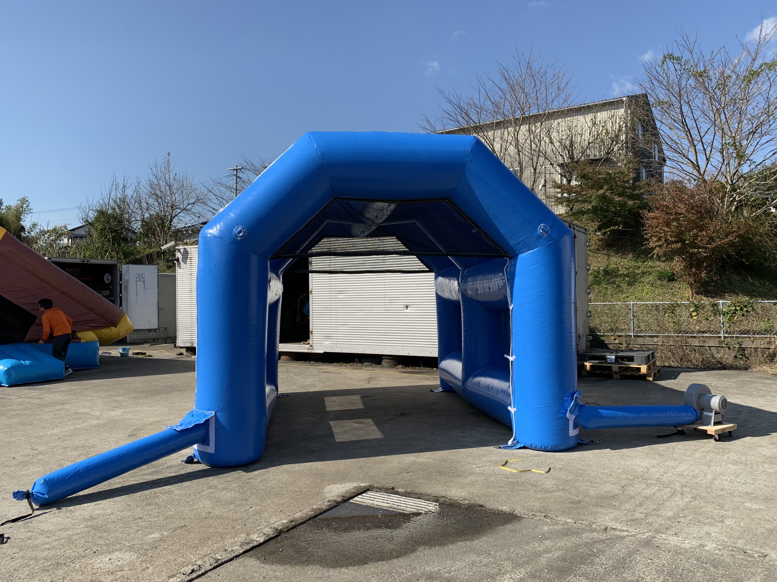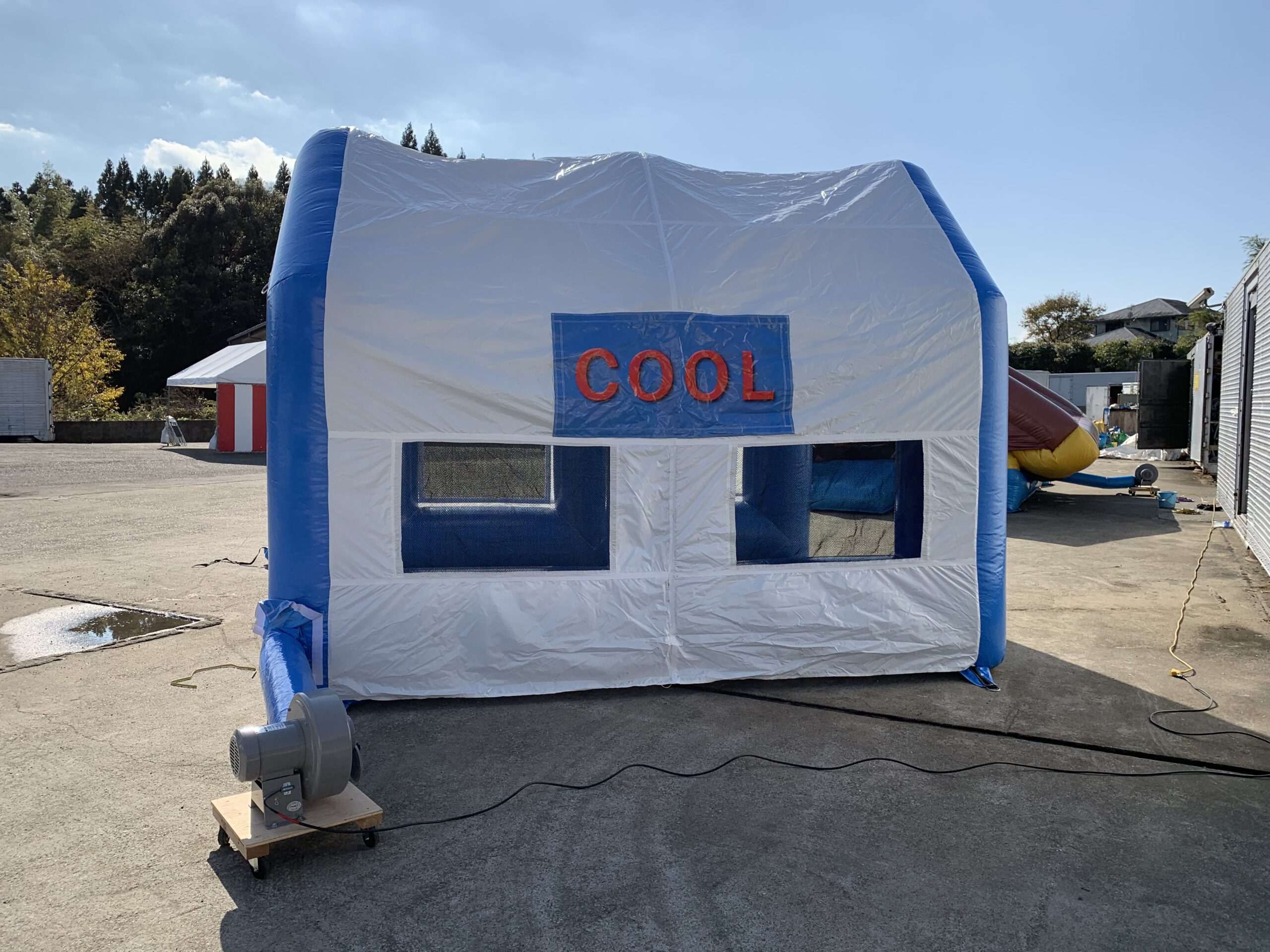 レンタル・販売ともに専用の送風機がセットになっており、別途ご用意いただく必要はありません。