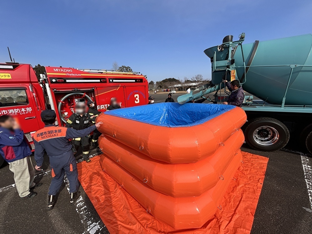 This temporary water storage tank can be used for firefighting activities and to secure emergency water for daily life in the event of a disaster.