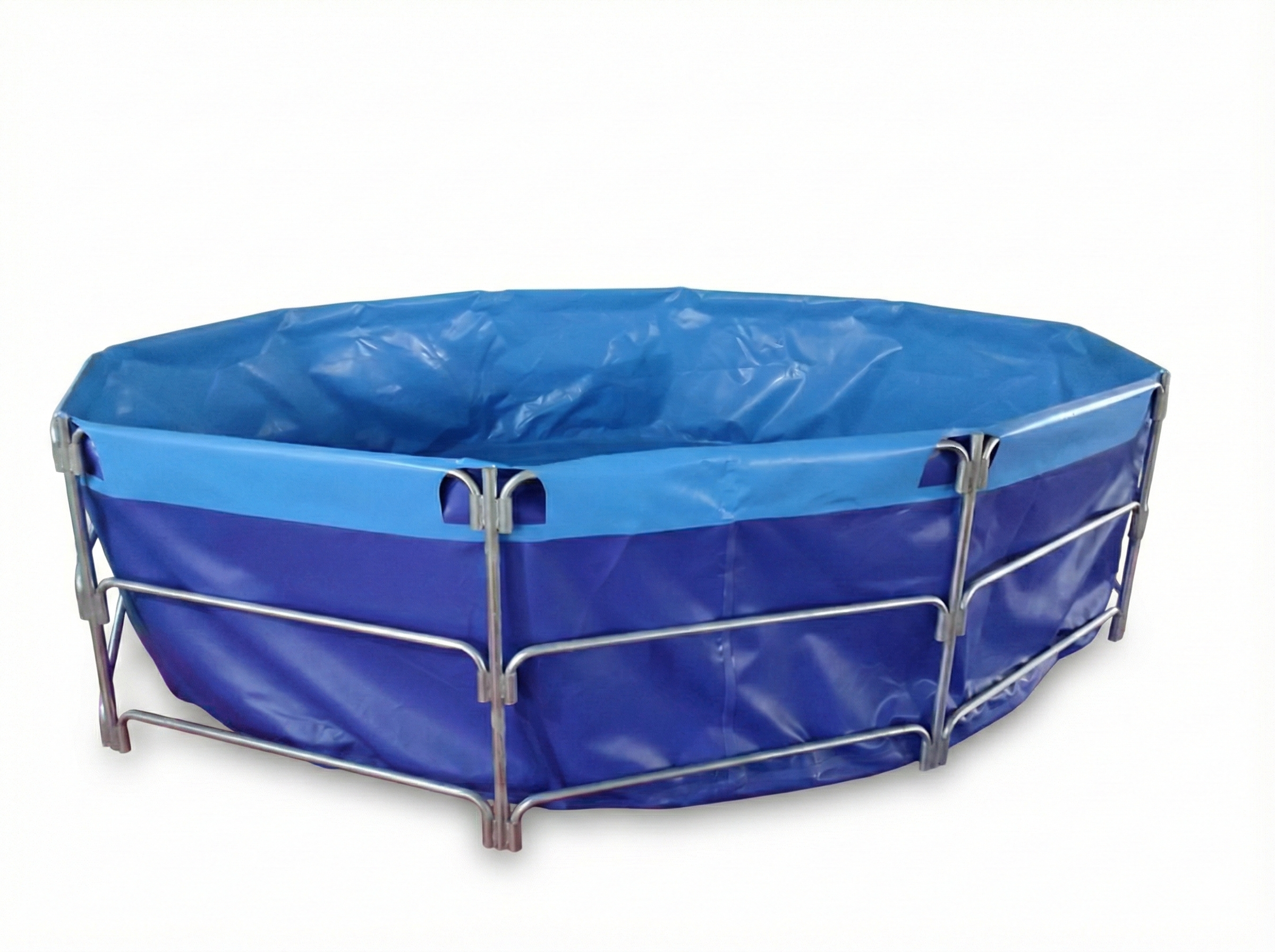 PVC製のプールシートとスチールパイプを組み合わせた構造により、最短1日での養殖場完成を実現します。